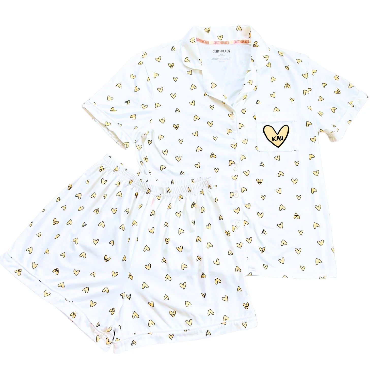 Sweet dreams, sisterhood edition. Our Love Letters PJ Set is printed with a dreamy heart pattern featuring your sorority letters and made from the softest butter fabric you’ll ever sleep in. With a relaxed fit and cute front pocket detail (starring your sorority’s heart front and center), this set is perfect for movie nights, sleepovers, or lounging in style with your sisters.