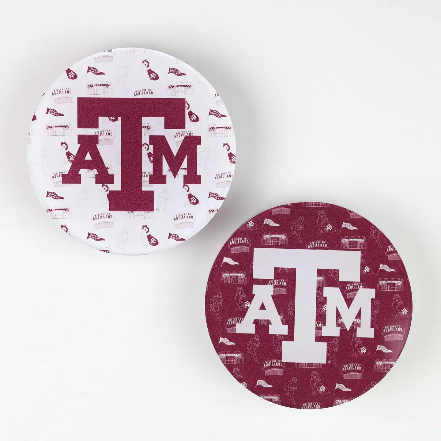 Show your Aggie spirit with these double-sided maroon and white coasters, perfect for tailgates, dorm rooms, or gifting to your favorite Texas A&M fan.