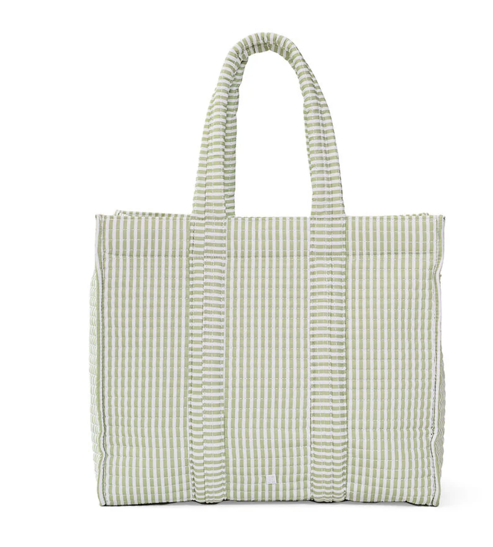 Our Go Go Tote is the perfect size to hold all of your belongings. You can use it as your everyday bag, beach bag, diaper bag, a carry on, or an overnight bag. It comes with exterior gusset pockets, drop collar zip closure, interior pockets and is wipeable inside and out or machine washable.