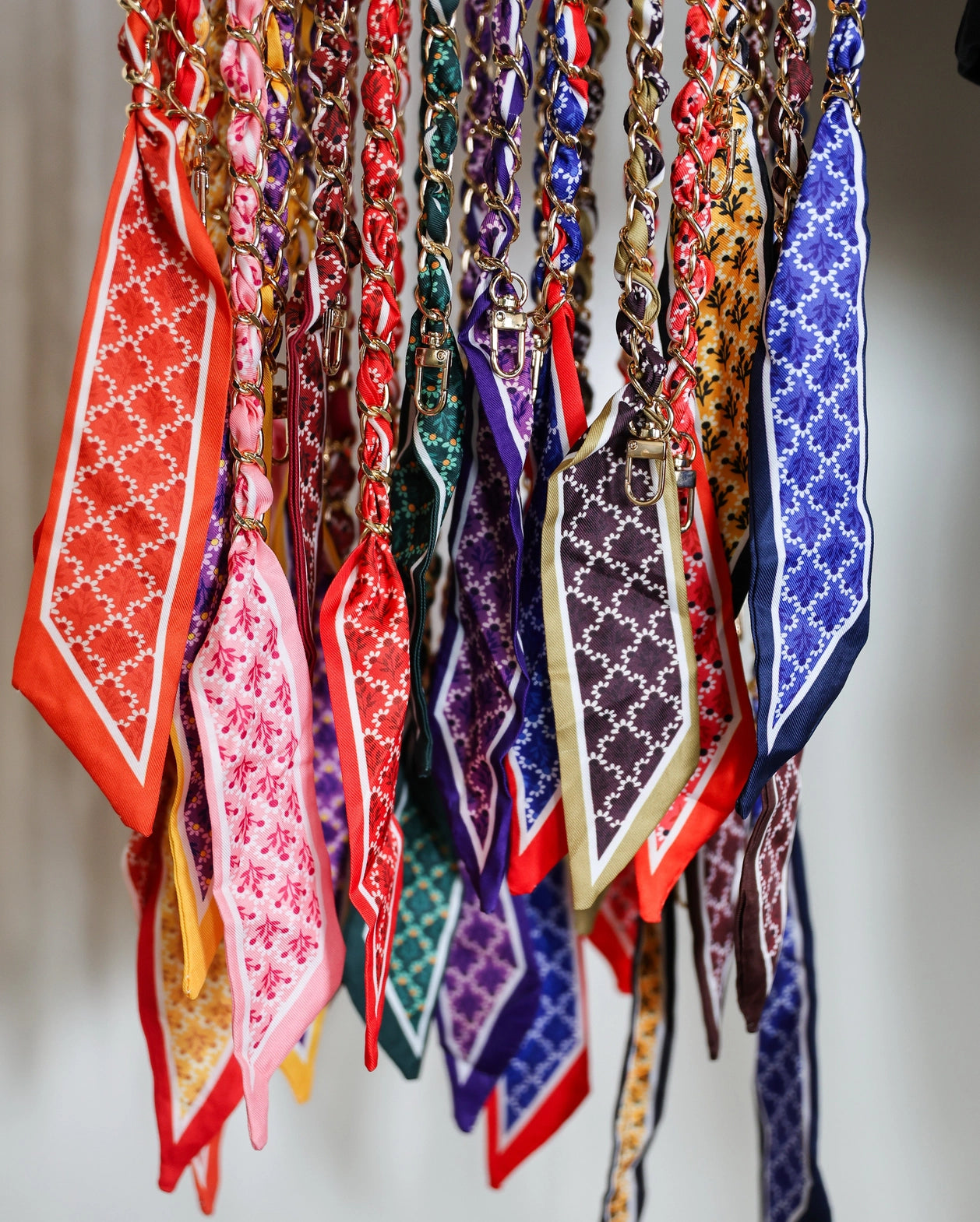 Elevate your bag or phone with the Victory Lap Gameday Chain Scarf Strap – a bold blend of fashion and function. This versatile strap features a gold chain interwoven with luxe patterned fabric. Whether you're headed to the stadium, the tailgate, or brunch with friends, this strap adds a pop of gameday spirit and a touch of elevated style to any crossbody bag or phone case. * PURSE NOT INCLUDED Designed for comfort and style, it clips on easily with gold-tone hardware and works with most standard hooks. Key Features: * Lightweight gold chain with woven fabric detail * Additional Clear Phone Attatchment for any case with a phone charger slot * Attaches to most crossbody bags and phone cases * A fun way to show your team spirit on game day or every day * Approx. 71 inches x 2 inches * Material: Polyester Scarf