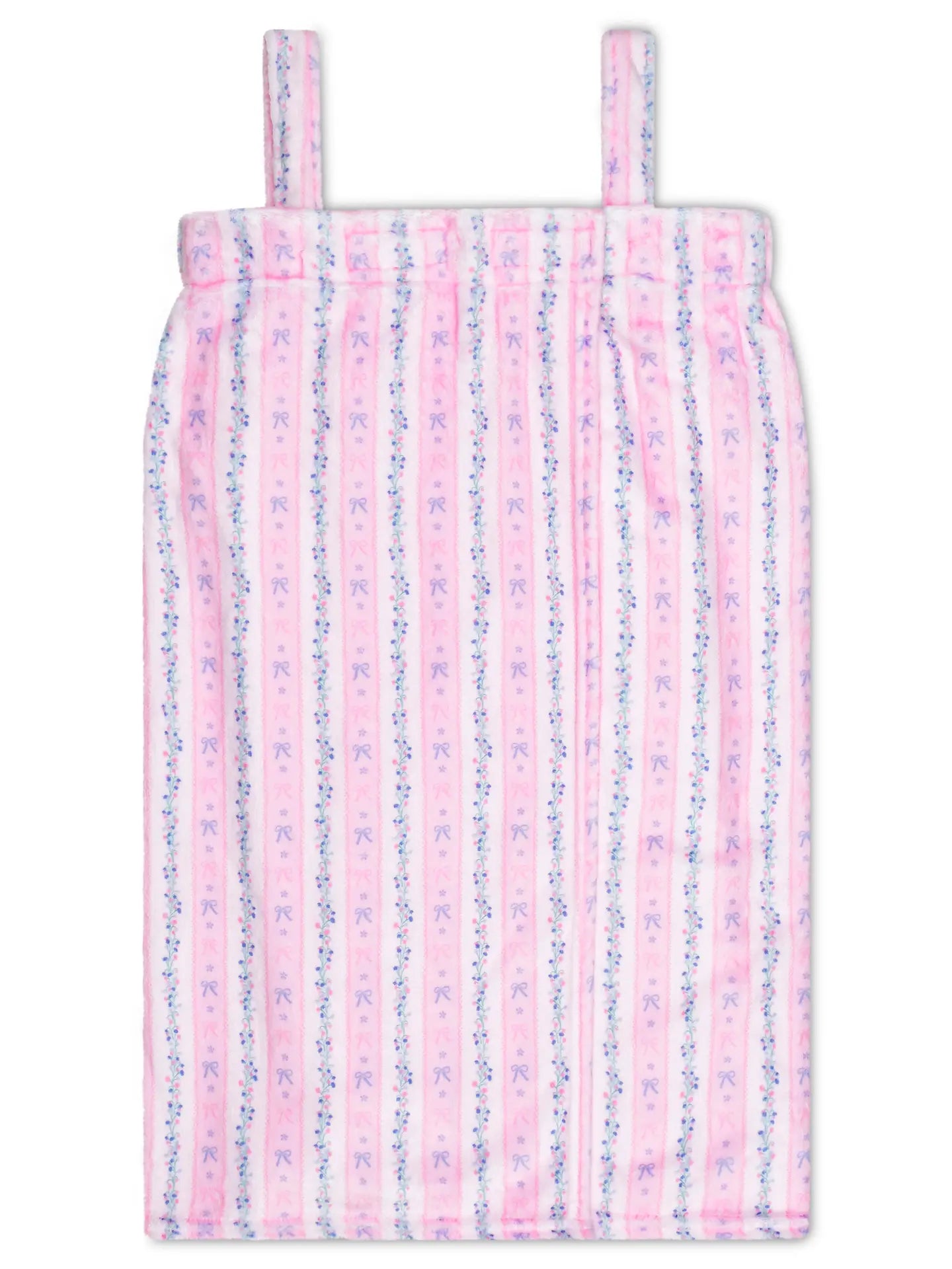 This Youth Spa Wrap is perfect for post-shower relaxation. With a fuzzy and stylish design, it features a velcro closure and removable straps for added support. Experience ultimate comfort and convenience with this must-have accessory.