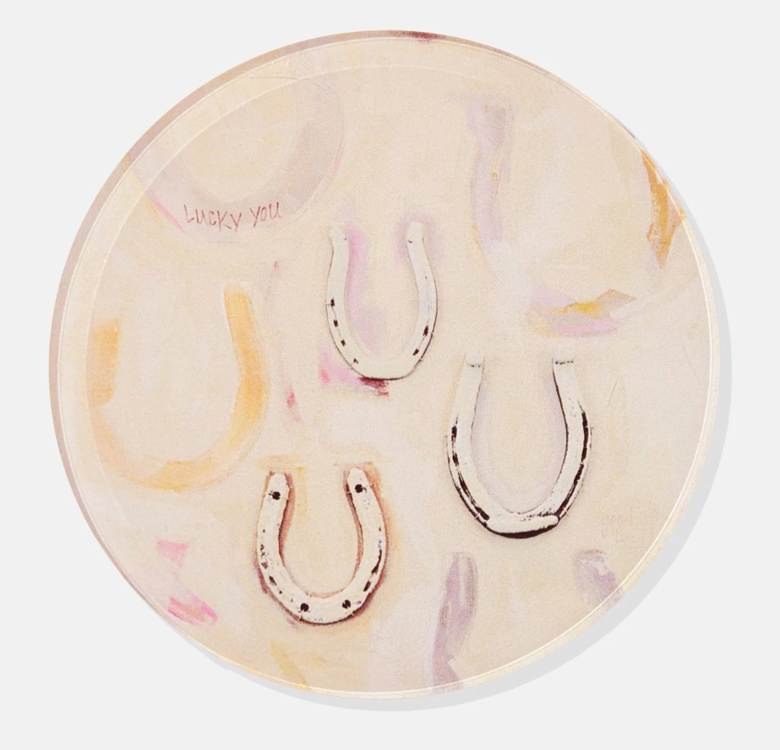 Kick up a little color, cowgirl! This set of acrylic coasters features Emma Katherine’s vibrant western artwork, blending bold hues and playful charm straight from the wild, wild Tart. Perfect for your bar cart, coffee table, or next girls’ night in, these coasters protect your surfaces while adding a dose of southern flair.