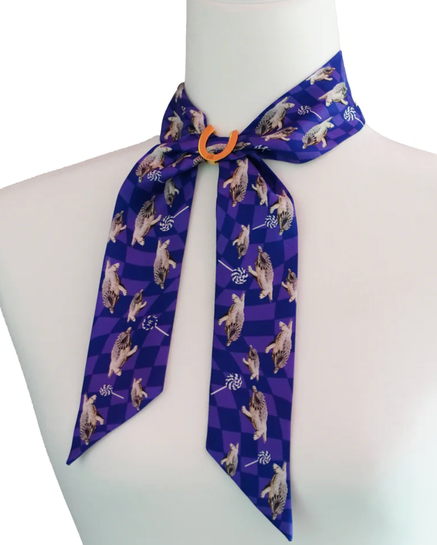 An elegant blend of tradition and modernity, the Hampton Road Silk Twilly Scarf Set includes a pure silk scarf and a gold-tone horseshoe-shaped scarf ring, thoughtfully packaged in a sleek acrylic tube for gifting or display. Inspired by classic equestrian motifs and timeless Americana, the scarf features a signature Hampton Road print on luxurious silk twill. Its slim, elongated silhouette is perfect for styling around the neck, wrist, hair, or handbag.