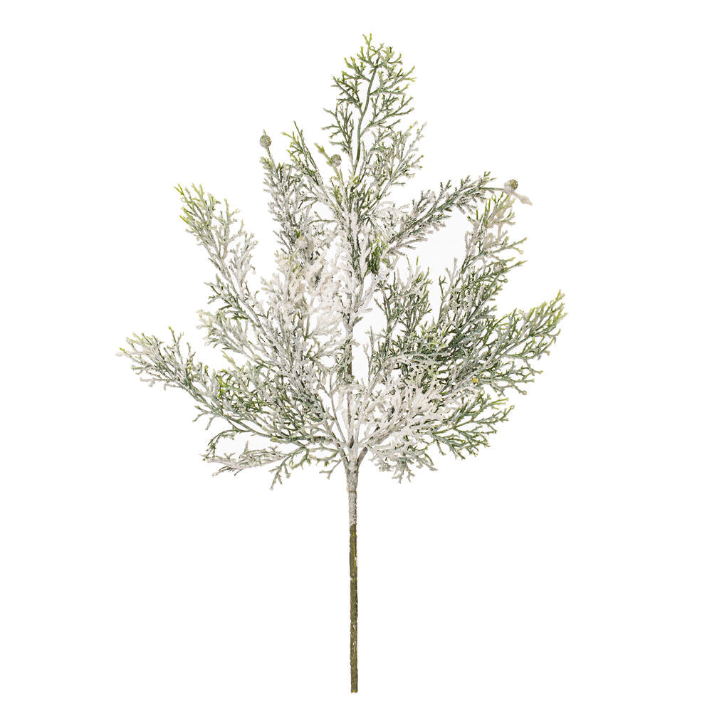Vickerman 18" Artificial Snowy Cedar Spray. Add texture and character to any arrangement with this Beautiful Cedar Spray featuring 11 Snow Covered Tips. Comes 6 per Pack.