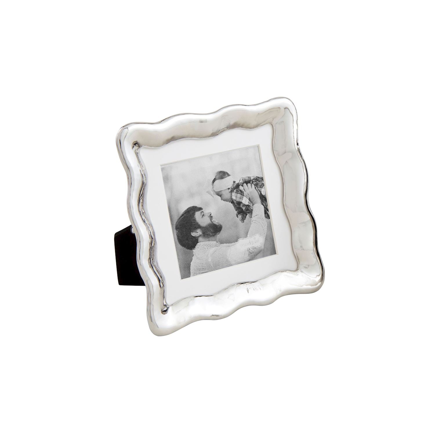 Wavy edge cast aluminum 3" x 3" frame with matting. Easel back.
