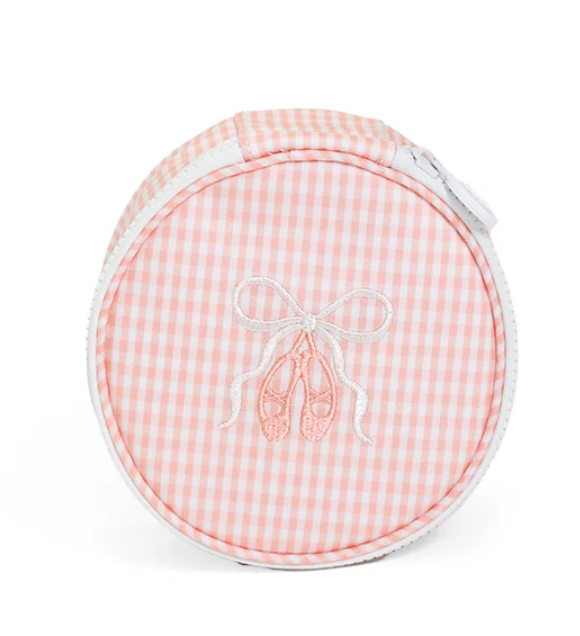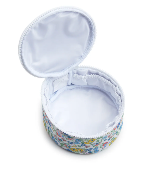 Our Jewel Round is super lightweight and a perfect place to store your bits and baubles.  It has elasticized compartments around the outer edge with a roomy middle compartment for bulkier pieces, like watches, bracelets and hair ties.  This case can just as easily be used as a general catch-all for things like keys or earbuds. As a bonus, it looks pretty enough to leave out on your dresser or desk when you're not traveling.
