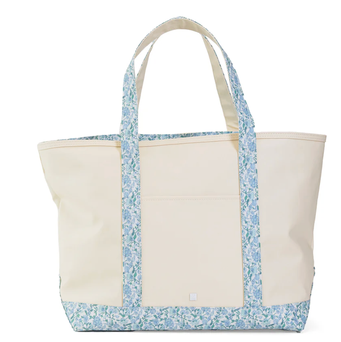 TRVL - MAXI TOTE - CANVAS LARGE NATURAL WITH HAMPTONS FLORAL TRIM